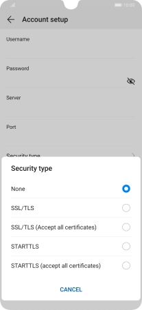 Press the field below "Server" and key in the name of your email provider's incoming server.