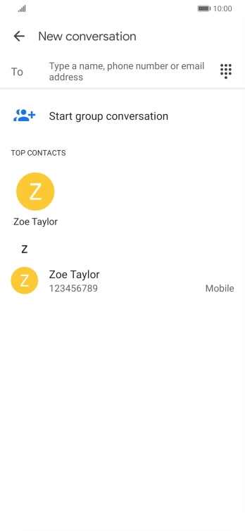 Press the field next to "To" and key in the first letters of the recipient's name.