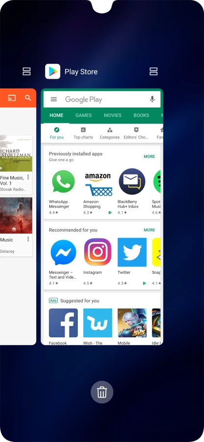 To end one running application, slide your finger upwards on the required application.