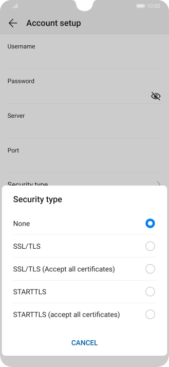 Press the field below "Server" and key in the name of your email provider's incoming server.