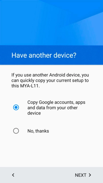 Press NEXT and follow the instructions on the screen to transfer the content from the other phone and finish the activation of your phone.