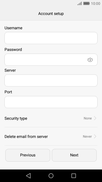 If this screen is displayed, you email account has been recognised and set up automatically. Follow the instructions on the screen to key in more information and finish setting up your phone.