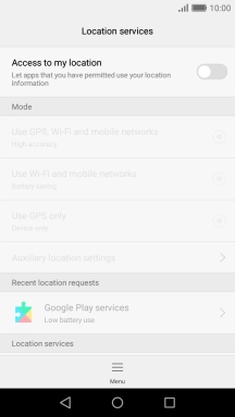 Press the indicator next to "Access to my location" to turn the function on or off.