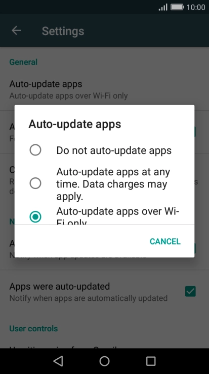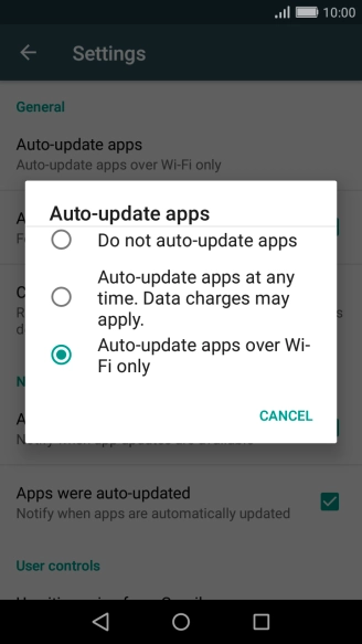 Press Auto-update apps over Wi-Fi only to turn on the function.