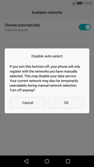 If you want to select a network manually, press the indicator next to "Choose automatically" to turn off the function.