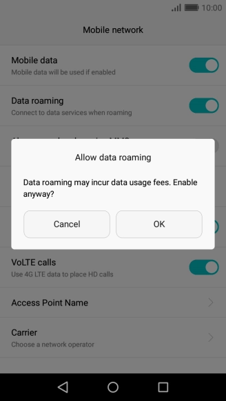 2 Turn data roaming on or off