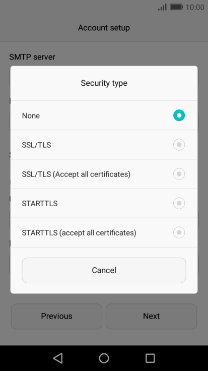 Press the field below "SMTP server" and key in the name of your email provider's outgoing server.