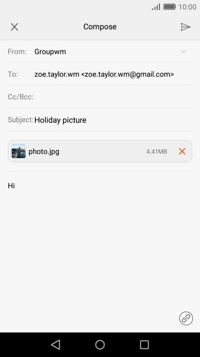 Press the send icon when you've finished your email message.