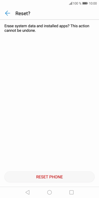 Press RESET PHONE. Wait a moment while the factory default settings are restored. Follow the instructions on the screen to set up your phone and prepare it for use.