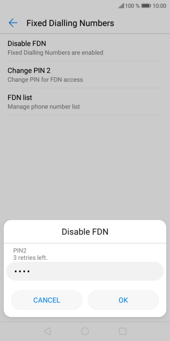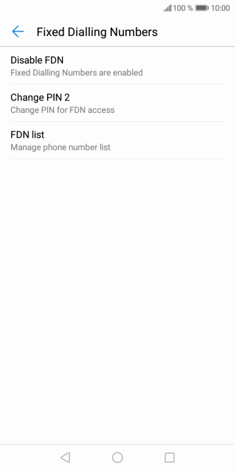 Press Disable FDN to turn off fixed dialling.