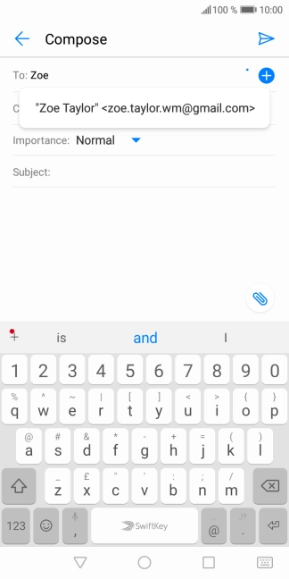 Press the text input field and write the text for your email message.