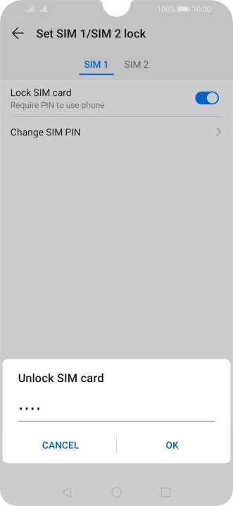 Press the indicator next to "Lock SIM card" to turn the function on or off.