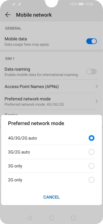 Press Preferred network mode below the required SIM.
