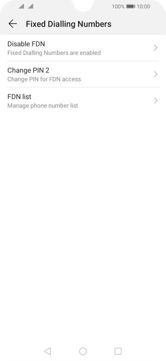 Press Disable FDN to turn off fixed dialling.