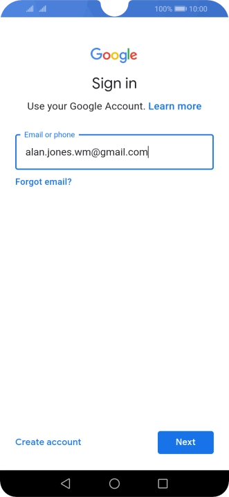 If you don't have a Google account, press Create account and follow the instructions on the screen to create an account.