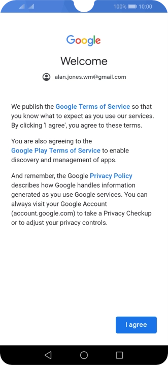 Press I agree and follow the instructions on the screen to select settings for your Google account.