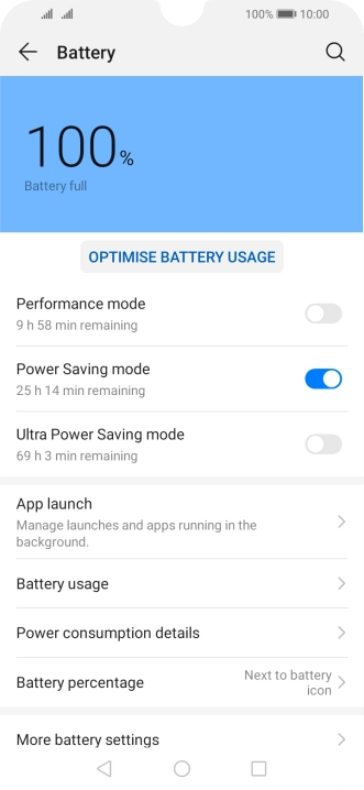 Some functions on your phone use a lot of power and therefore significantly reduce the battery life. You can reduce the power consumption by turning on low power mode.