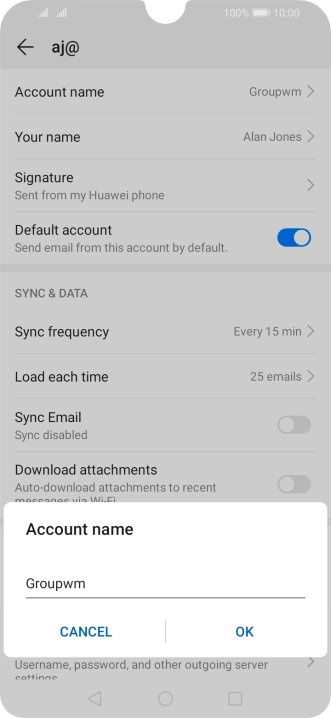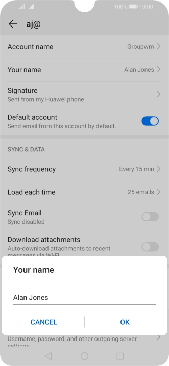 If this screen is displayed, you email account has been recognised and set up automatically. Follow the instructions on the screen to key in more information and finish setting up your phone.