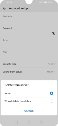 Press Never to keep email messages on the server when you delete them on your phone.