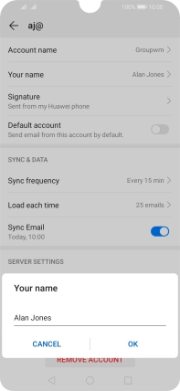 Press Your name and key in the required sender name.