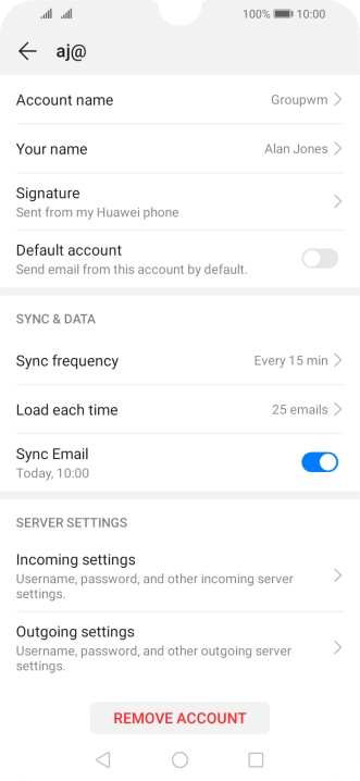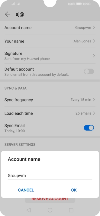 Press the field below "Server" and key in the name of your email provider's incoming server.