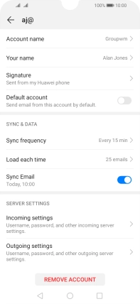 Press Password and key in the password for your email account.