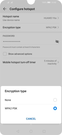Press WPA2 PSK to password protect your Wi-Fi hotspot.