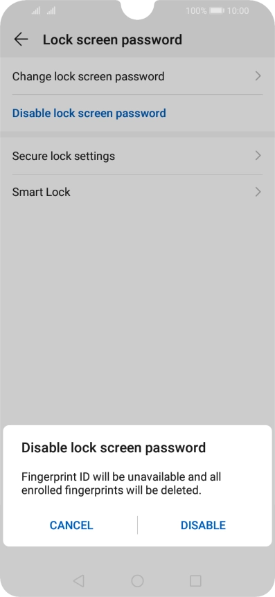 Press Disable lock screen password.