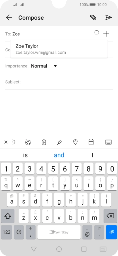 Press the text input field and write the text for your email message.