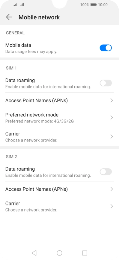 Press Access Point Names (APNs) below the required SIM.