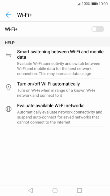 Press the indicator next to "Wi-Fi+" to turn the function on or off.