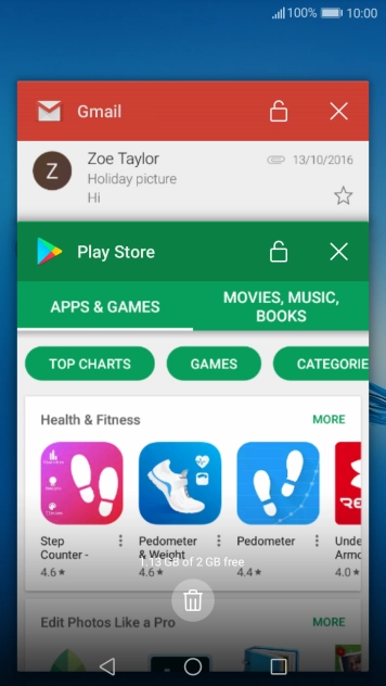 To end one running application, slide your finger right on the required application.