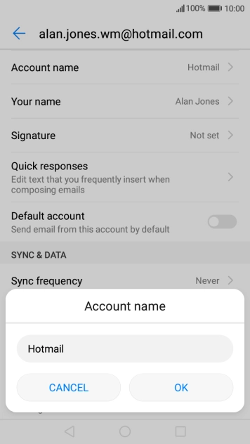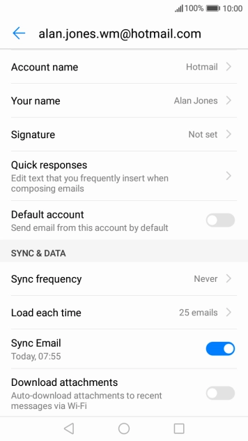 If this screen is displayed, you email account has been recognised and set up automatically. Follow the instructions on the screen to key in more information and finish setting up your phone.