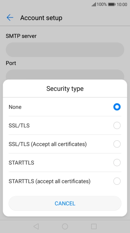 Press the field below "SMTP server" and key in the name of your email provider's outgoing server.