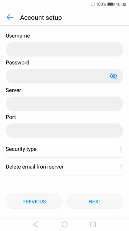 If this screen is displayed, you email account has been recognised and set up automatically. Follow the instructions on the screen to key in more information and finish setting up your phone.
