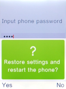Press the Left selection key to confirm. Wait a moment while the factory default settings are restored.