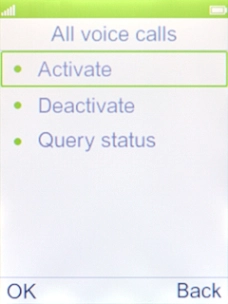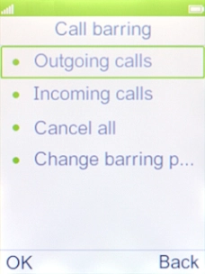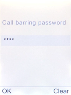 Key in your barring password and press the Navigation key. The default barring password is 0000.