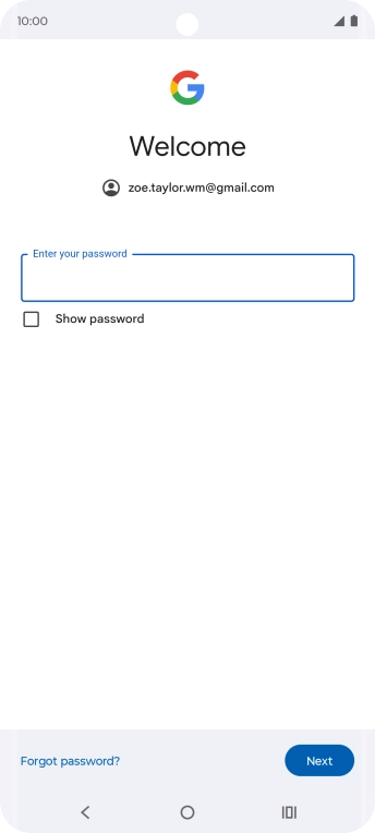 Press the field below "Enter your password" and key in the password for your Google account.