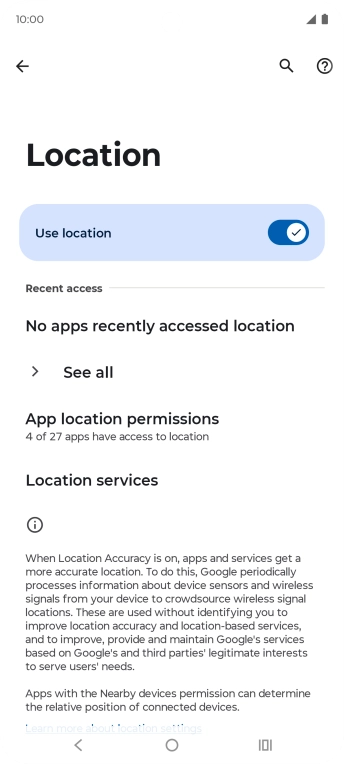 If you press the indicator next to "Improve Location Accuracy" to turn off the function, your phone can find your exact position using the GPS satellites but it may take longer as there is no access to supplementary information from the mobile network or nearby Wi-Fi networks.