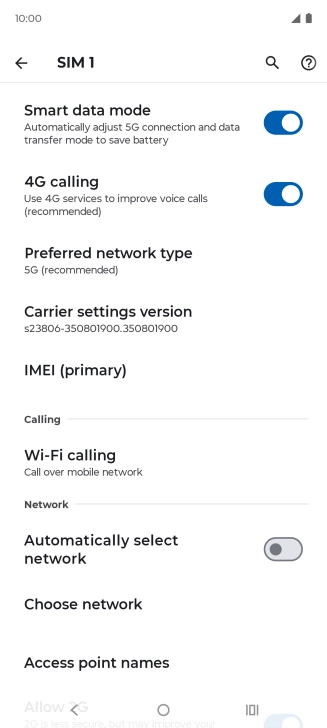 Press the indicator next to "Automatically select network" to turn on the function.