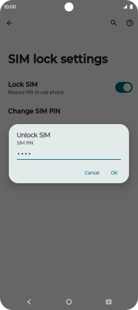 Press the indicator next to "Lock SIM" to turn the function on or off.