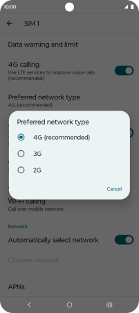 Press Preferred network type.
