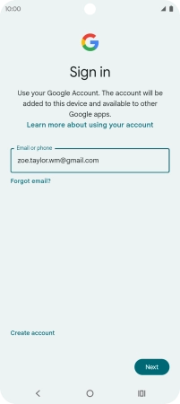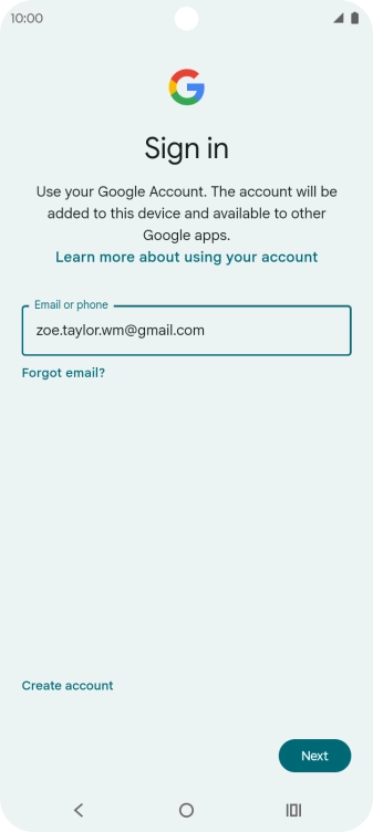 If you don't have a Google account, press Create account and follow the instructions on the screen to create an account.
