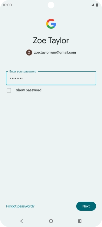 Press the field below "Enter your password" and key in the password for your Google account.