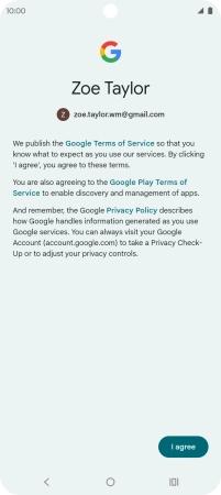 Press I agree and follow the instructions on the screen to select settings for your Google account.