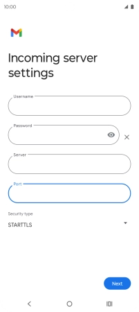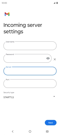 Press the field below "Server" and key in the name of your email provider's incoming server.