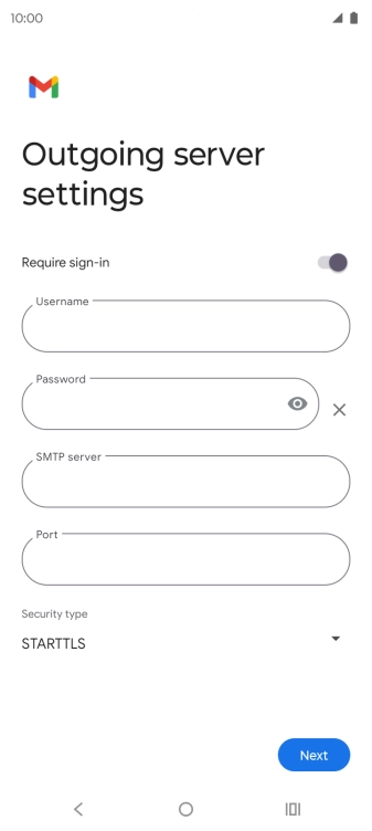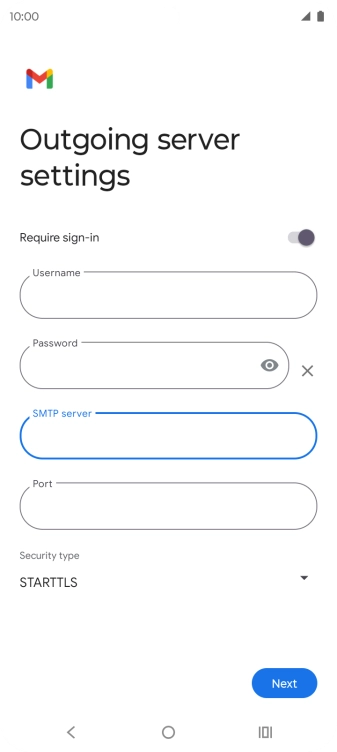 Press the field below "SMTP server" and key in the name of your email provider's outgoing server.