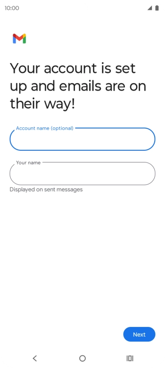 If this screen is displayed, you email account has been recognised and set up automatically. Follow the instructions on the screen to key in more information and finish setting up your phone.