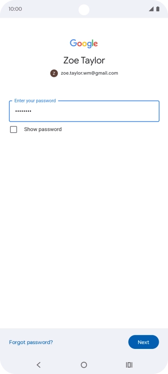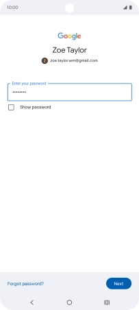Press the field below "Enter your password" and key in the password for your Google account.