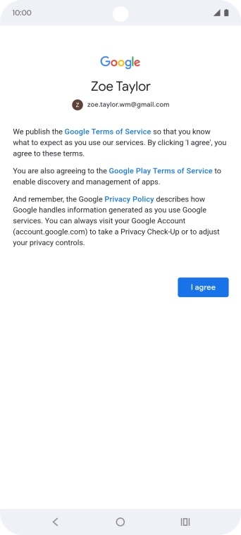 Press I agree and follow the instructions on the screen to select settings for your Google account.